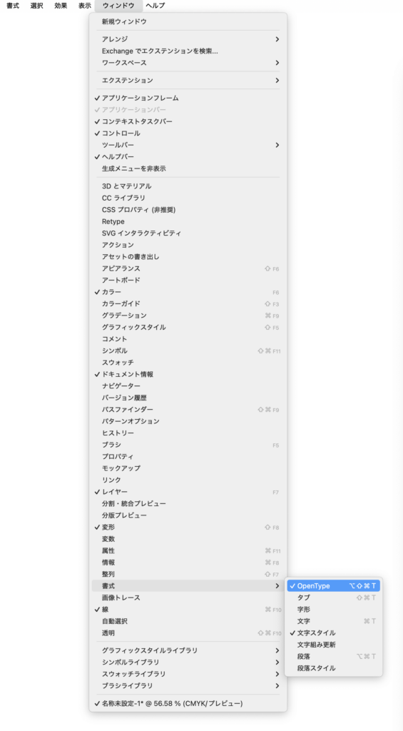 ただし、Illustratorの「OpenTypeパネル」にある機能を使いたい場合は、そのフォントがOpenType形式、またはOpenType機能に対応している必要があります。