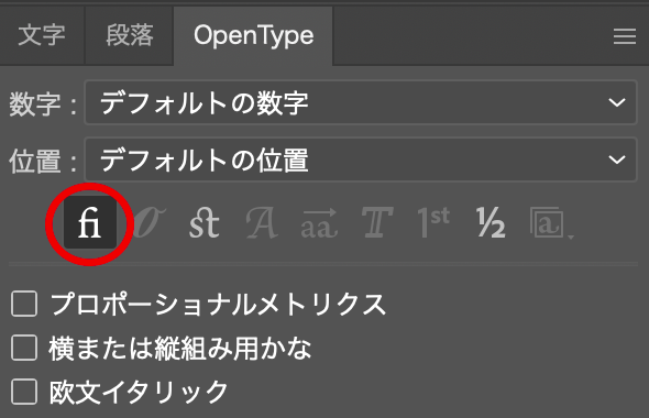 • 「fi」や「fl」などの文字を自然につなげて美しく見せる機能(リガチャ)